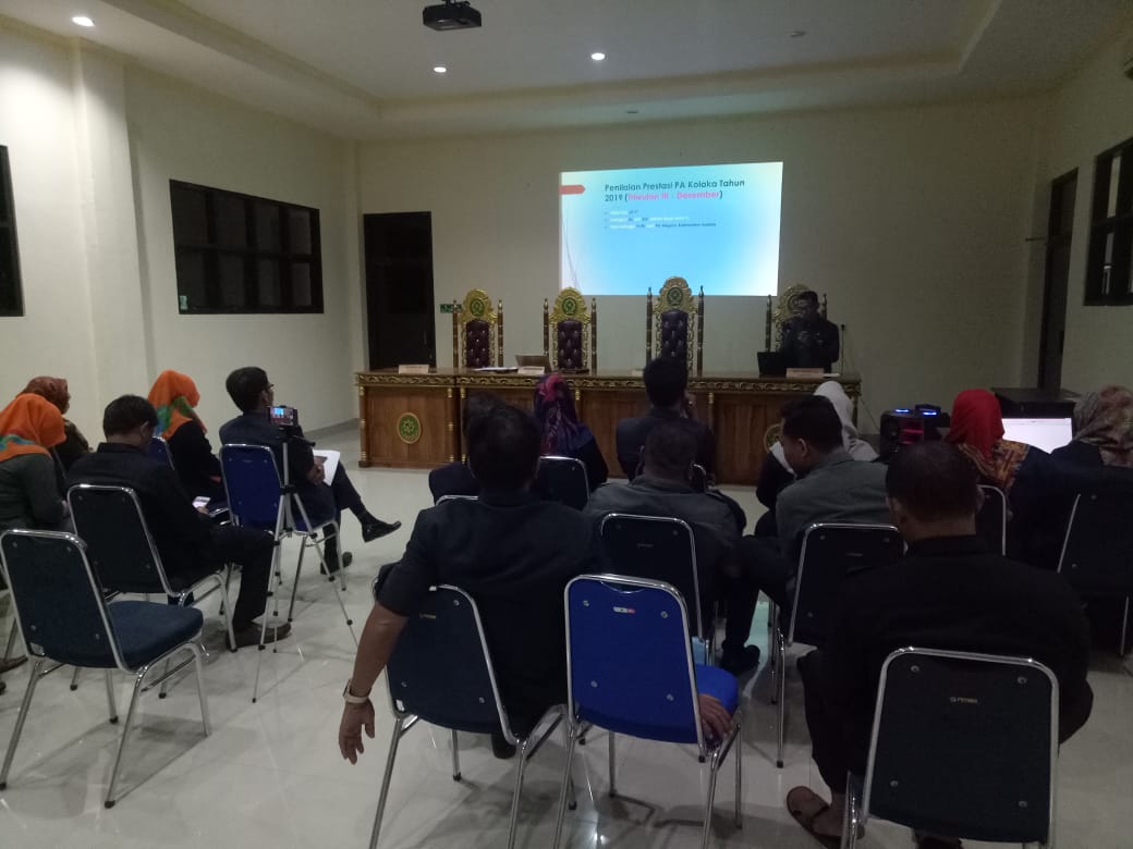 Oleh Wakil Ketua, pembahasan dimulai dari dasar kebijakan, tujuan, aspek-aspek apa saja yang dinilai, dan kenapa hal tersebut penting untuk diperhatikan oleh seluruh pegawai PA Kolaka. Meskipun penilaian ini mempengaruhi promosi mutasi tenaga teknis, juga tidak kalah penting adalah peran bagian kesekretariatan. Karena ada beberapa hal yang dilakukan mempengaruhi nilai yang akan dicapai.